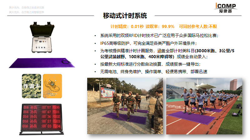 4月13日、14日、15日,連續(xù)三日中部戰(zhàn)區(qū)某部的考場(chǎng)上,由我司協(xié)助的軍事院校招生軍事共同科目三公里考試課目順利完成。我們利用自主研發(fā)的雙頻無(wú)源RFID計(jì)時(shí)系統(tǒng),快速、準(zhǔn)確地記錄30多組考生考核成績(jī)。本次考試協(xié)助工作中設(shè)備運(yùn)行穩(wěn)定、計(jì)時(shí)精準(zhǔn)、全方位專業(yè)而周到的服務(wù),得到考核組的一致好評(píng)。
